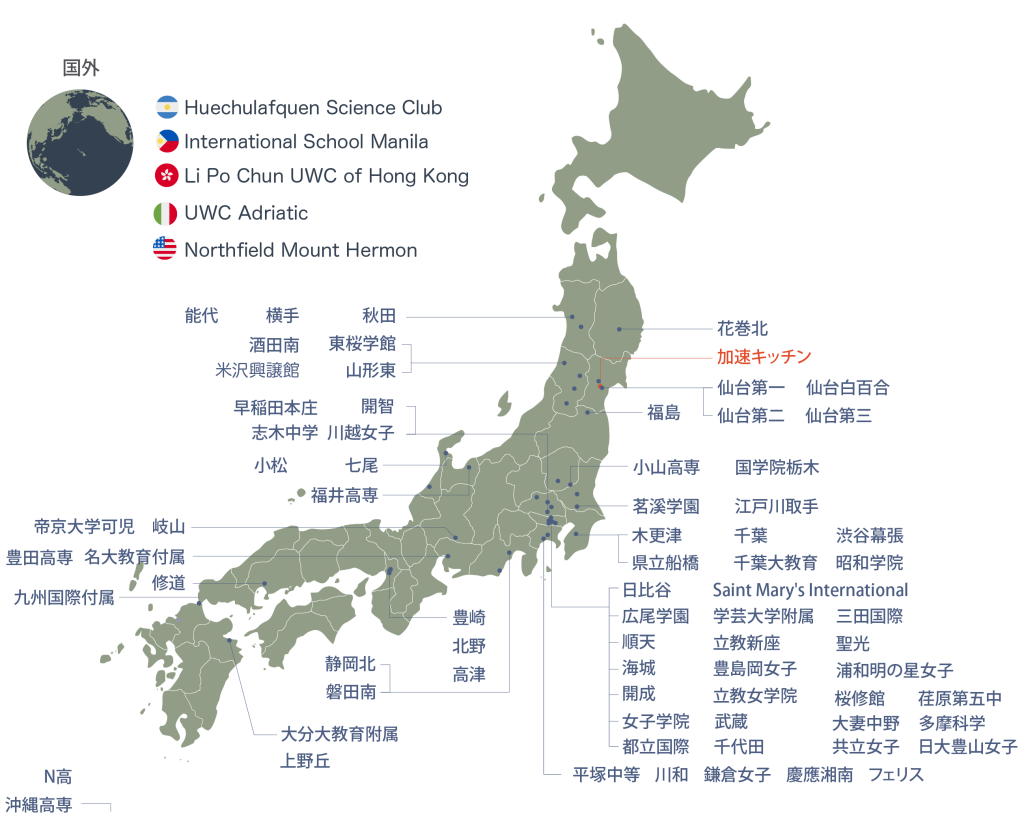 世界12か国以上の中高生とつながり、様々な国際共同宇宙線探究が行われています。トビタテ!留学Japanで現地の研究所で実験、日本人初の世界最大大型加速器CERNでのビーム実験なども行われています。